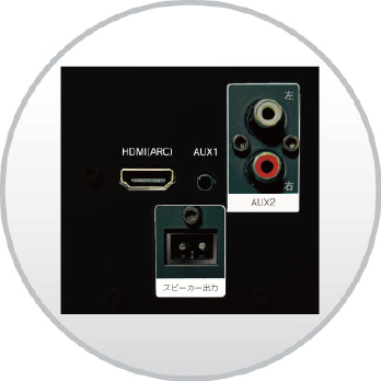 | オーディオ入力端子 | AUX1:Φ3.5mm×1/AUX2:白赤(L/R)×1 |